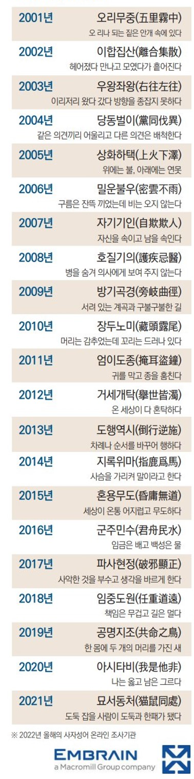 역대 올해의 사자성어