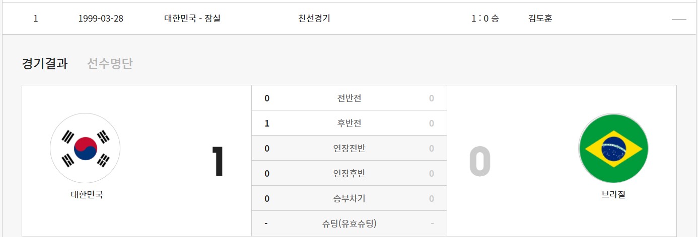1999년 3월 28일 친선경기 : 1승 기록