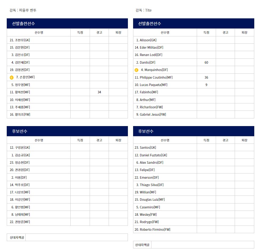 카타르월드컵 - 대한민국 vs. 브라질 역대 전적, 하이라이트