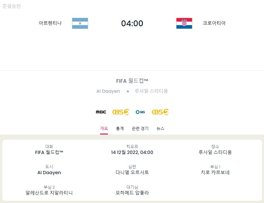 오는 14일 04시(한국시각)에 열리는 아르헨티나와 크로아티아의