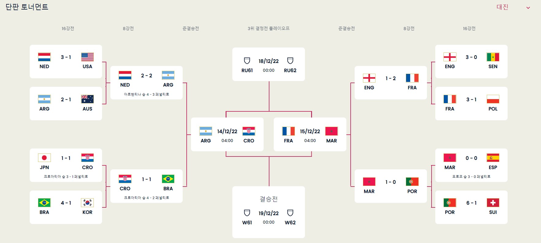 카타르월드컵 4강 대진, 일정, 최근전적, 하이라이트
