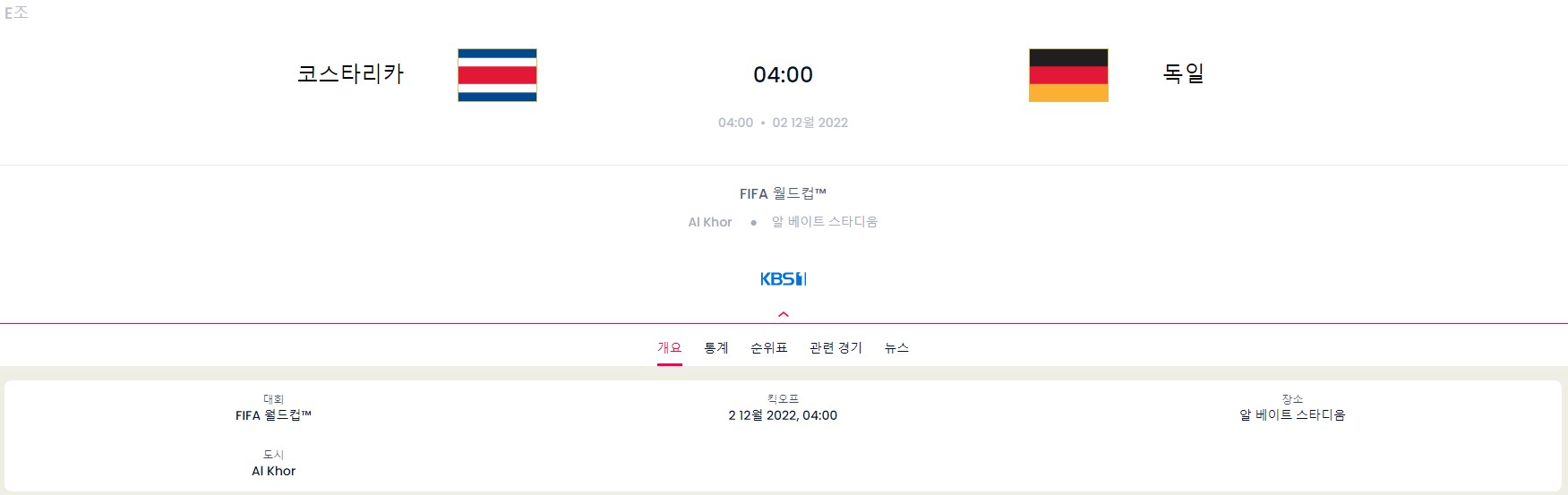 12월 2일 04시 E조 (일본 vs 스페인 / 코스타리카 vs 독일)