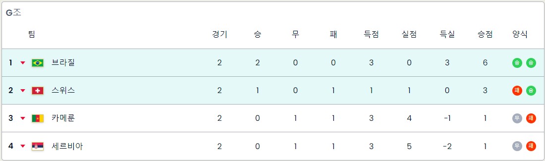 G조 순위표
