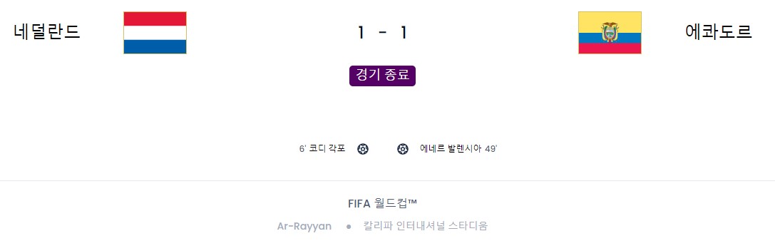 네덜란드 - 에콰도르 경기결과