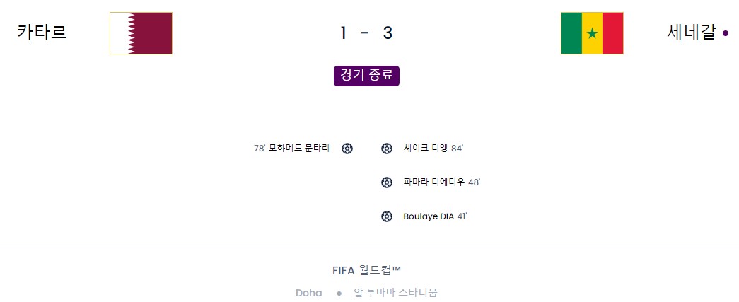 카타르 - 세네갈 경기결과